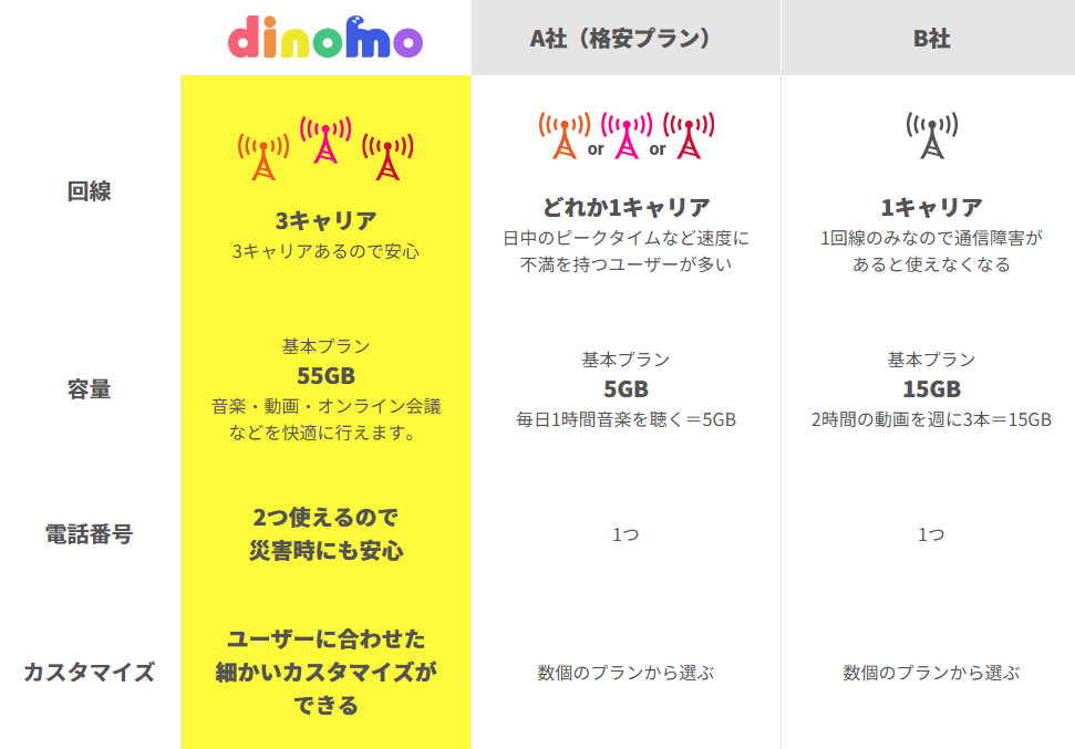 - 6 dinomo トリプルキャリアプランを他社と比較